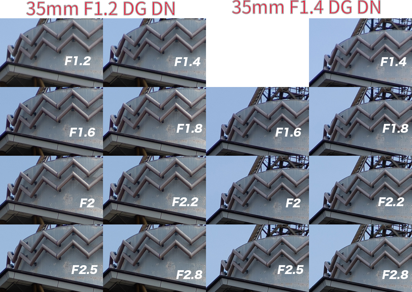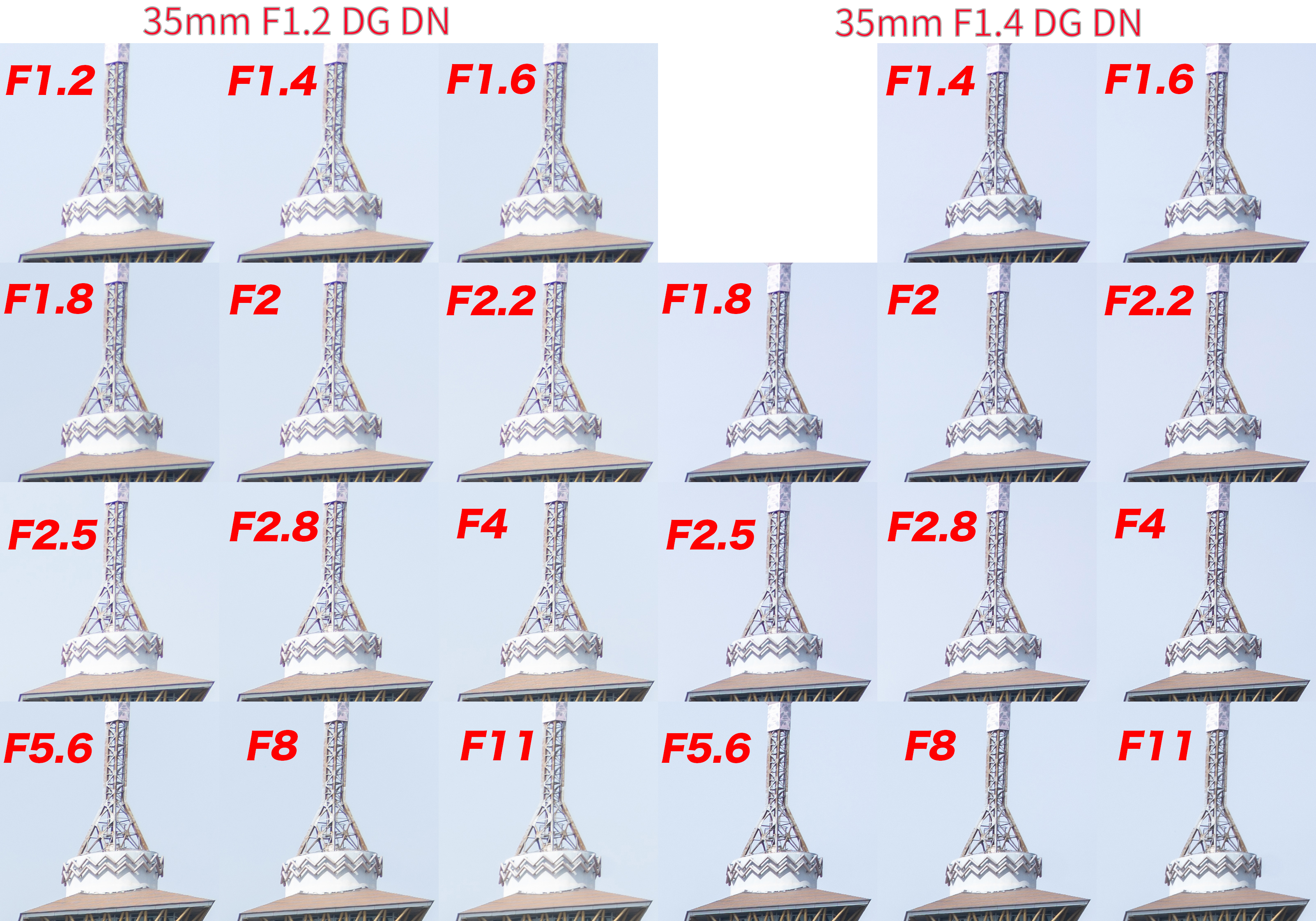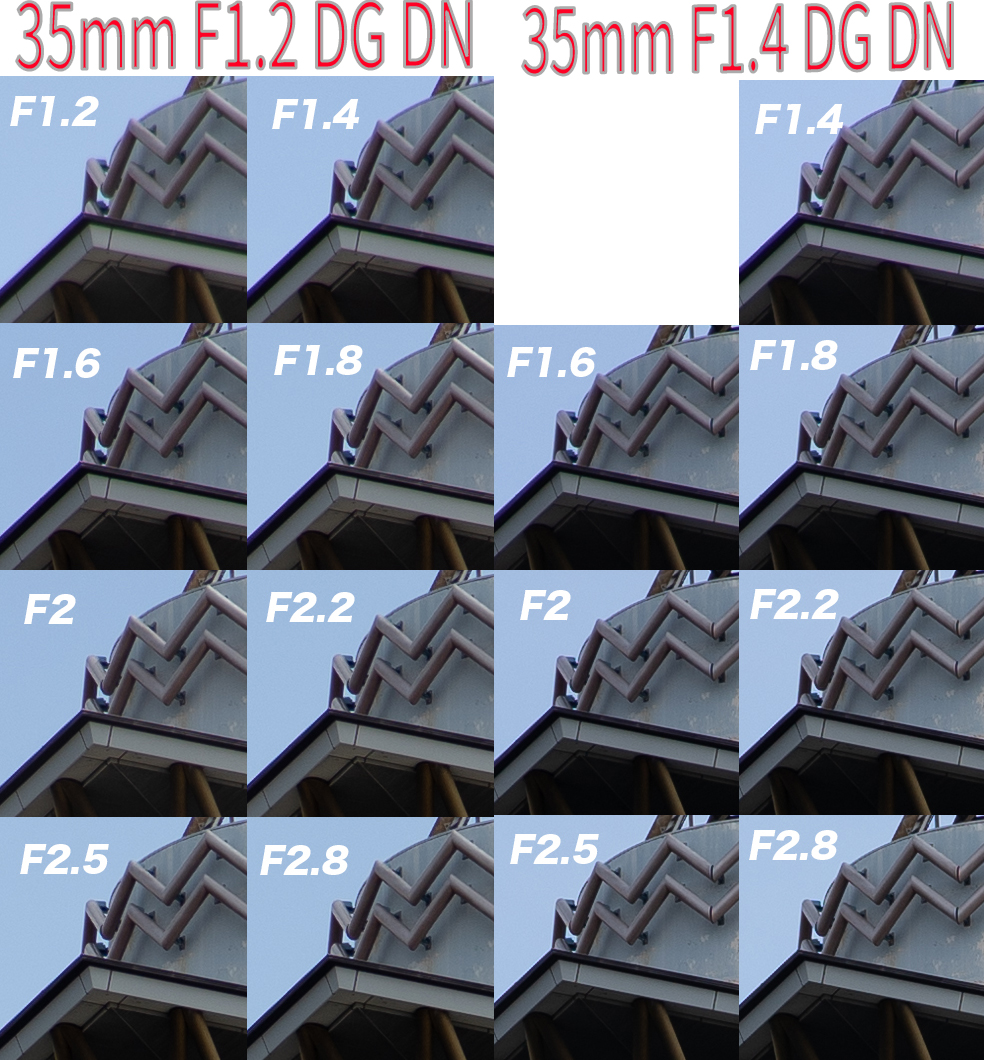 これは35mm F1.2 DG DNとF1.4 DG DNを比較したわけではなく、以下の比較をしました。(興味がない方は読み飛ばしてください!)