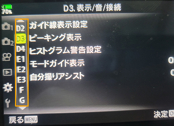 先程のオリンパス公式で確認できますが、選択肢が約30項目しかありません。(GX7MK2ですら54項目)