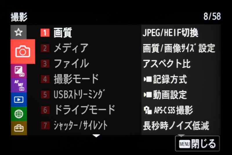 ↓はa7IVのメニュー画面ですが、こっちのほうがわかりやすいですよね。